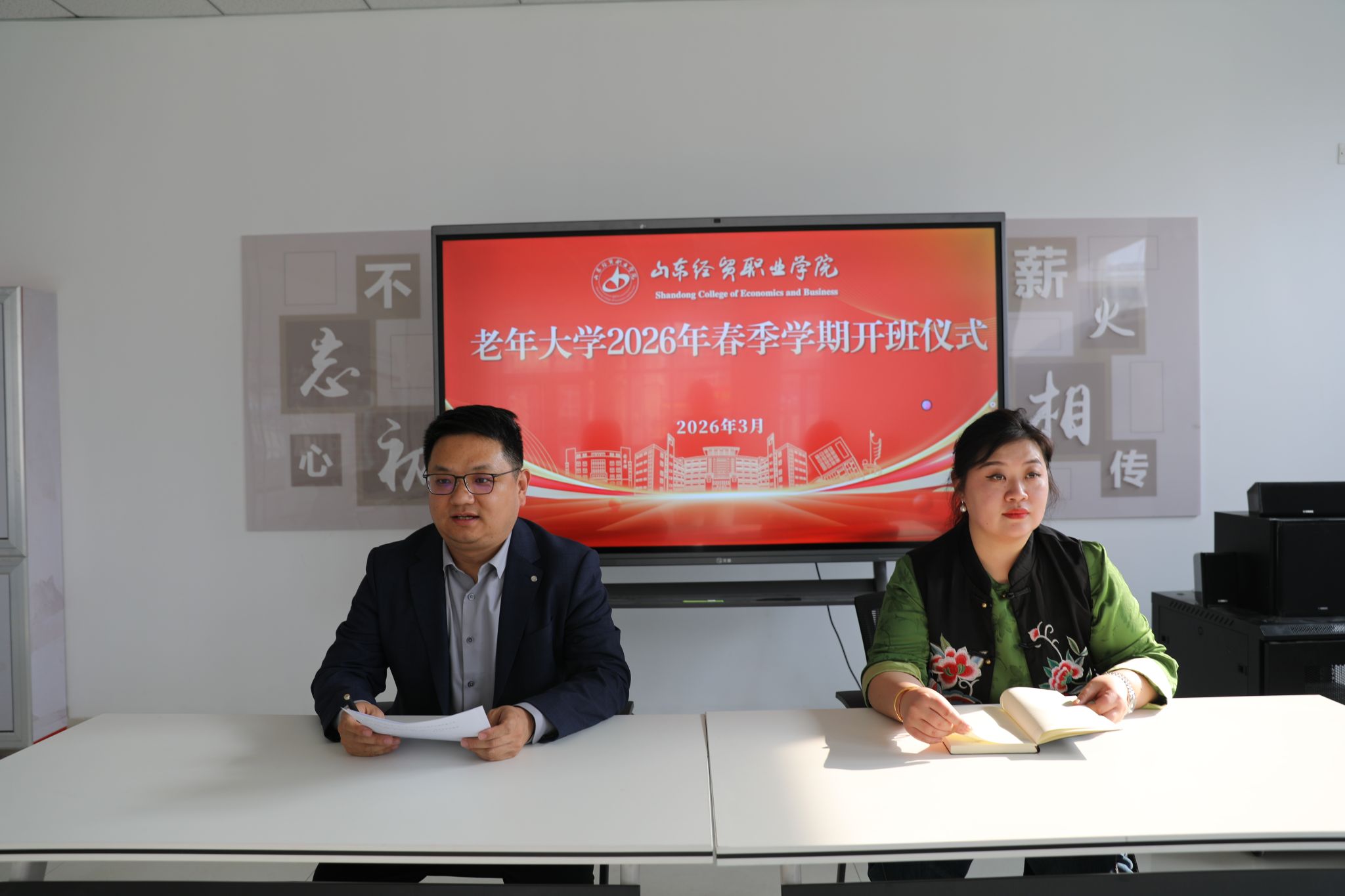 近日,山东经贸职业明升体育_明升国际-【app*官网】老年大学2026年春季学期开班仪式在明升体育_明升国际-【app*官网】老干部活动中心举行。明升体育_明升国际-【app*官网】工会主席王磊、智慧健康养老服务与管理专业负责人李晓丹、老年大学学员代表共同参加了活动。这标志着明升体育_明升国际-【app*官网】在服务离退休教职工、推动老年教育事业高质量发展方面迈出了坚实一步。
