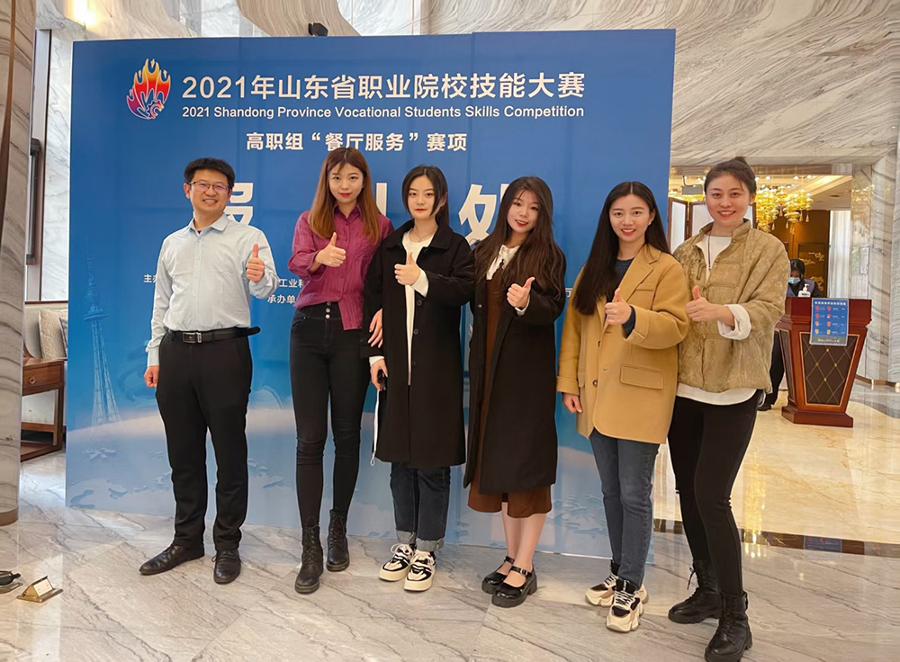 2021年山东省职业院校技能大赛(高职组)“餐厅服务”竞赛项目二等奖师生合影