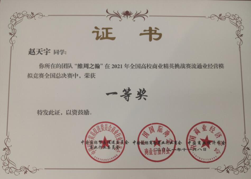 我系学生荣获2021年全国高校商业精英挑战赛流通业经营模拟竞赛全国总决赛一等奖