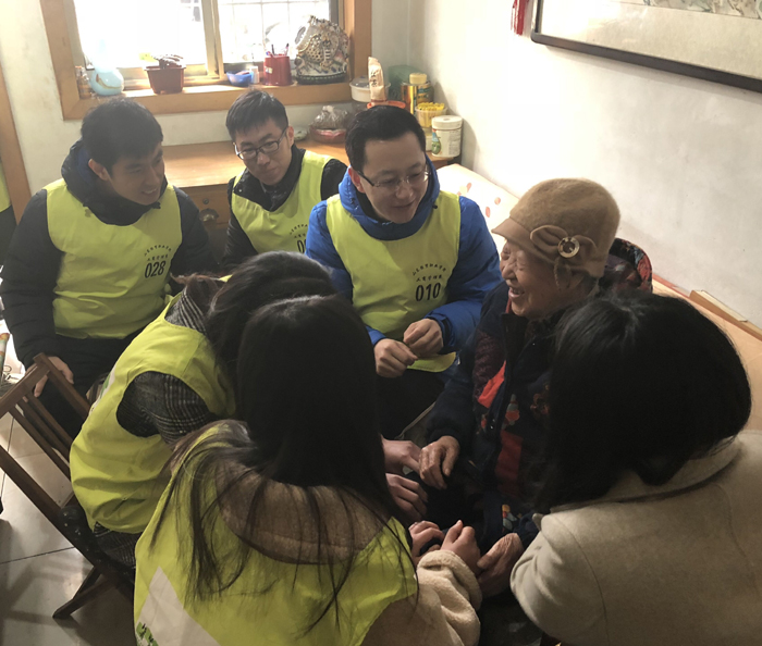 活动中,大家在工福街社区会议室集体观看了“雷锋精神与红色文化”主题宣传片《青春雷锋》,聆听了全国五星级志愿者、山东省道德模范谭瑞霞阿姨讲述的多年参加志愿服务的亲身经历及她抚养五名孤儿长大成人的感人故事。随后,同学们在系学生科长潘玉波、辅导员王明、王焱老师的带领下,清扫街道、铲除小广告、擦拭公共自行车……,大家不怕脏不怕累,经过两个多小时的辛勤劳动将社区周边打扫的干干净净。最后,志愿者们一起来到88岁的“空巢老人”房瑞娥家中,有的陪老人聊天,有的整理房间卫生,有的给老人按摩身体。房奶奶看到同学们忙前忙后深受感动,临走时握着大家的手依依不舍,小伙伴们的眼睛也湿润了,纷纷表示以后会经常来看望老人家。