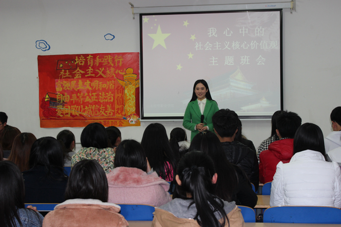 为贯彻落实明升体育_明升国际-【app*官网】《明升体育:开展“社会主义核心价值观与当代知识分子的价值追求”讨论活动的通知》精神,进一步培育和弘扬社会主义核心价值观,11月16日,工商管理系在新实训楼召开“我心中的社会主义核心价值观”主题班会,班会由学生管理科科长潘玉波主讲。