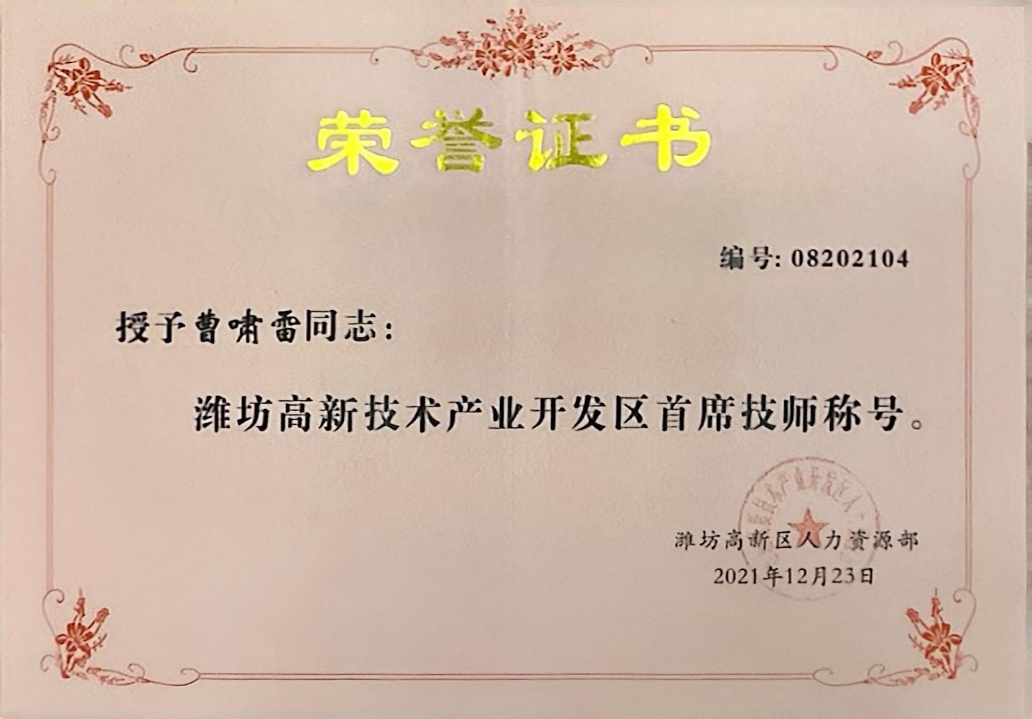 在日常的教学工作之余,还担任电气自动化技术专业技能大赛的指导教师,指导学生参加了2022年全国行业职业技能竞赛,学生获得第一名,获得金牌指导教师称号;本人参加山东省“技能兴鲁”职业技能大赛,获职工组第2名一等奖;参加潍坊市职业技能竞赛获第一名一等奖,并获潍坊市技术能手荣誉称号,同时还获得潍坊高新区首席技师荣誉称号。2023年,获“山东省技术能手”荣誉称号。2024年,获“山东省技术技能大师”荣誉称号。