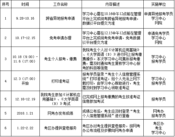 根据网考办 [2017]27号文件《全国高校网络教育部分公共基础课统一考试2017年12月考试工作安排》,特通知如下: