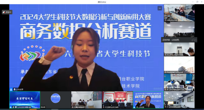 11月6日,由山东省科学技术协会、山东省教育厅、共青团山东省委、山东省发展和改革委员会、山东省工业和信息化厅、山东省人力资源和社会保障厅联合主办,山东省大数据研究会、山东经贸职业明升体育_明升国际-【app*官网】承办承办单位,厦门网中网软件有限公司技术支持的第十六届山东省大学生科技节—山东省大学生数据分析与创新应用大赛商务数据分析赛道总决赛开幕式在明升体育_明升国际-【app*官网】:举行。来自全省高校及职业院校的77支参赛队伍线上同步参加本次大赛开幕式。