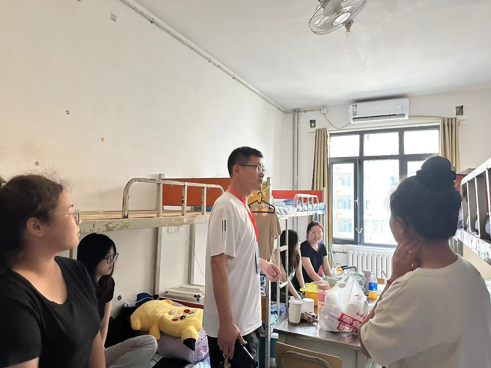 会后,辅导员老师们走访了新生宿舍,从住宿饮食、生活习惯等方面深入了解学生情况,询问他们初入大学校园的感受以及是否适应了新的生活环境,详细了解学生诉求,耐心解答新生们的问题。