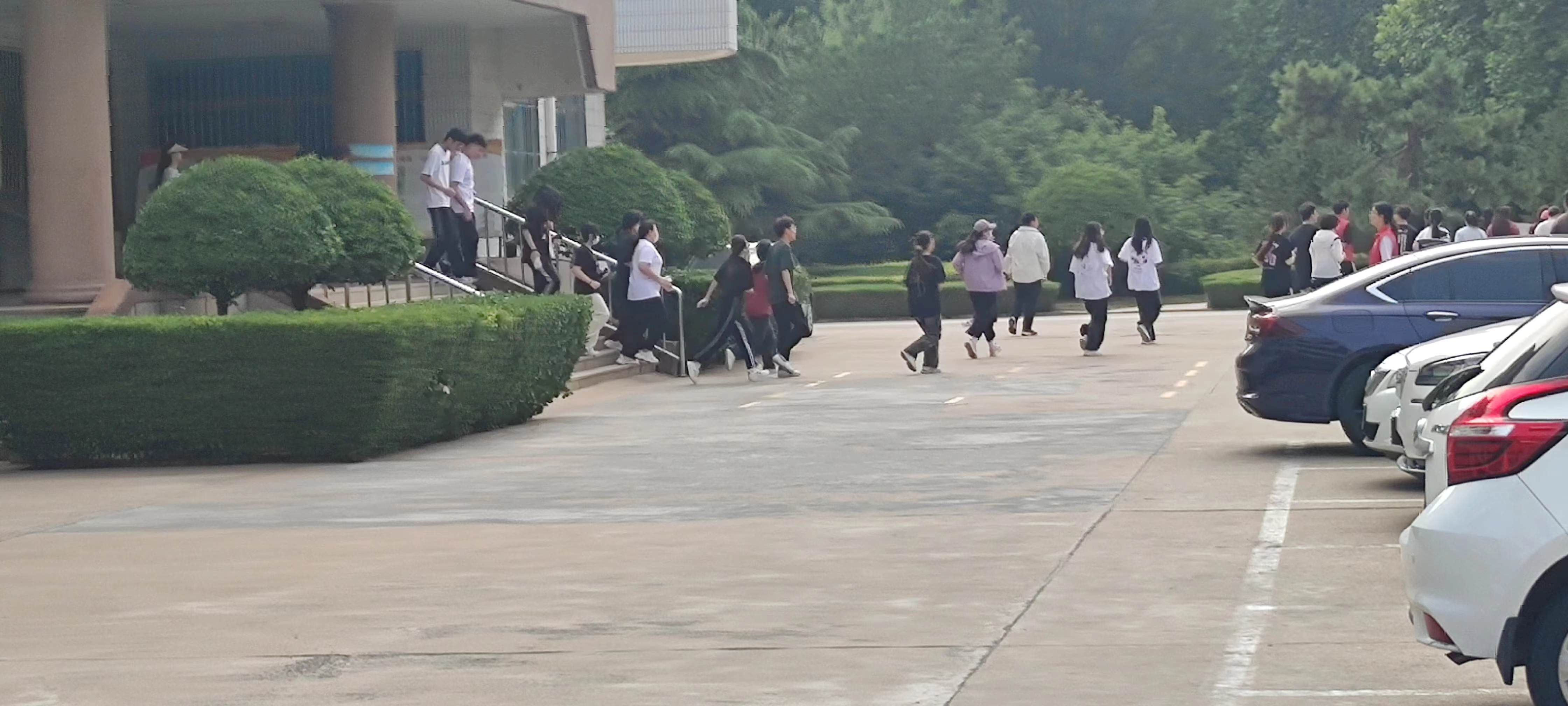 下午三点随着一声哨响,演练开始。各班级马上组织人员迅速进入紧急疏散状态,在各班级安全员带领下,大家弯着腰按照逃生演练方案设定逃生路线,迅速而有序往教学楼外疏散,人员到达目的地后,快速整队,核查人数,以确保无一人漏掉。整个逃生演练活动规范有序,紧凑安全高效。