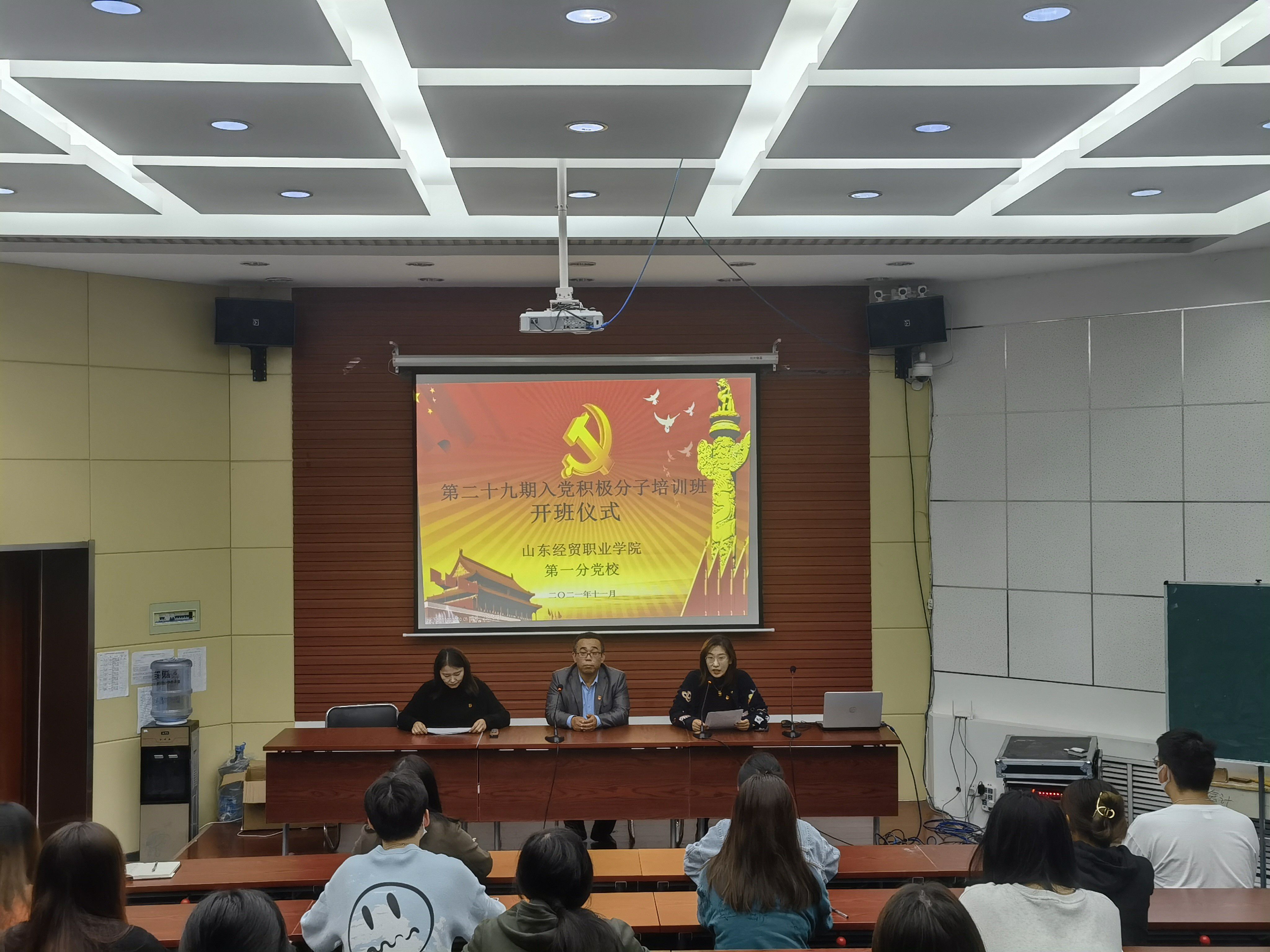 11月4日下午,明升体育_明升国际-【app*官网】第一分党校第29期入党积极分子开班仪式在会计系122大讲堂举行,会计系党总支书记陈志勇、学工党支部书记朱程程、学工支部组织委员王新秀以及参加培训的入党积极分子代表共同参加此次开班仪式。