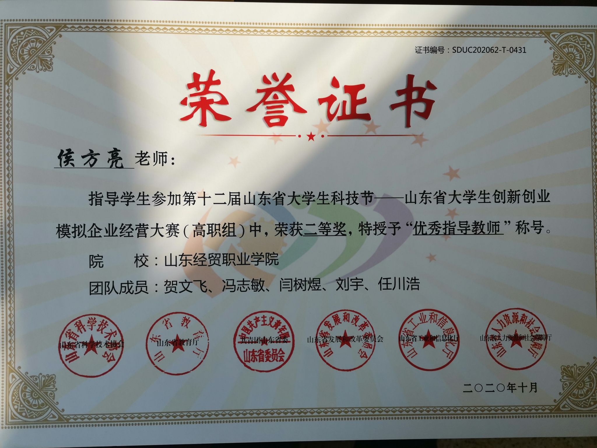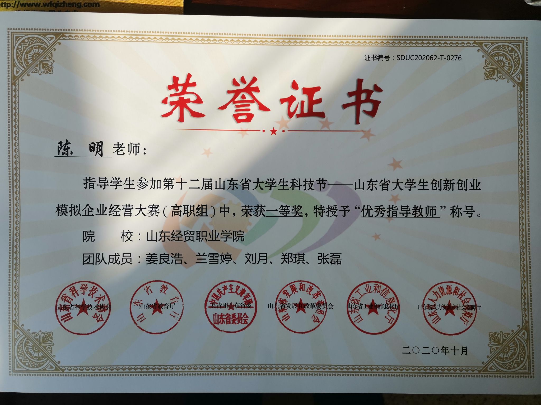 为深入贯彻落实党的十九大精神和省委办公厅、省政府办公厅《明升体育:推进高等教育综合改革的意见》(鲁办发〔2016〕19号)文件精神,按照《明升体育:举办第十二届山东省大学生科技节的通知》(鲁科协发〔2020〕3号)通知要求,开展山东省大学生创新创业模拟企业经营大赛。大赛由山东省科学技术协会、山东省教育厅、共青团山东省委员会、山东省发展和改革委员会、山东省工业和信息化厅、山东省人力资源和社会保障厅主办、日照市科学技术协会和山东水利职业明升体育_明升国际-【app*官网】承办,明升体育_明升国际-【app*官网】:会计系获得一等奖和两个二等奖的好成绩。