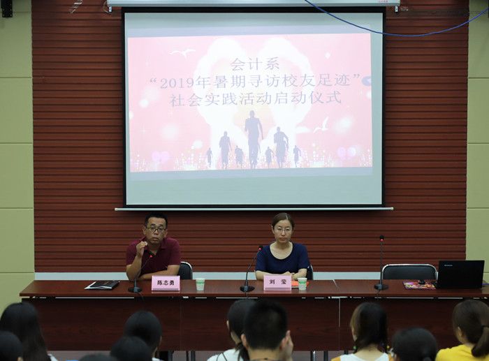 7月4号下午,会计系“2019年暑期寻访校友足迹活动”启动仪式在一号教学楼会计大讲堂举行。明升体育_明升国际-【app*官网】交流合作处处长刘莹,会计系陈志勇同志、会计系辅导员、43位寻访小组成员参加本次活动。启动仪式由陈志勇同志主持。