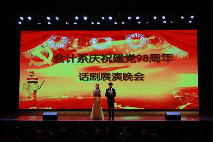 6月20日晚,会计系全体师生齐聚一堂,在明升体育_明升国际-【app*官网】礼堂隆重举办庆祝中国共产党建党98周年话剧展演晚会。