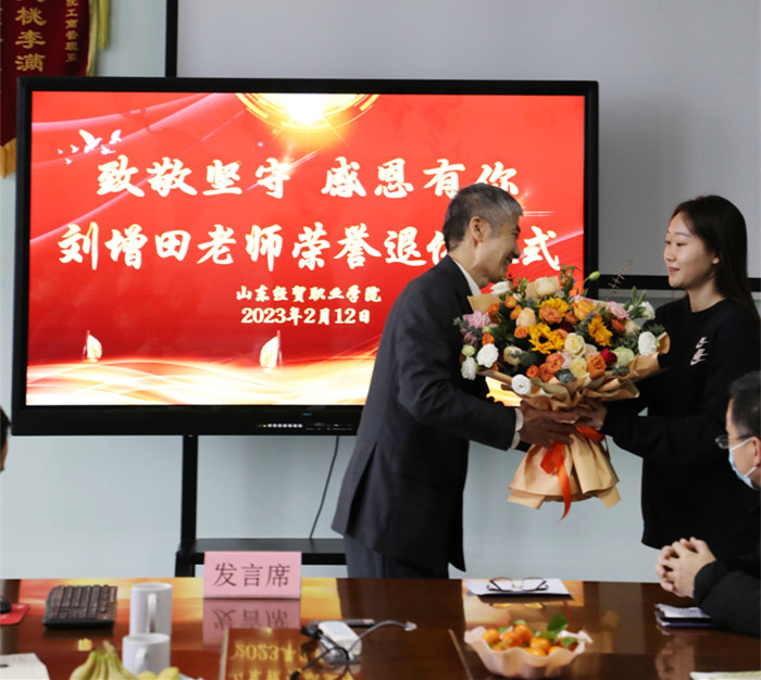 2月12日上午,刘增田老师荣誉退休仪式在实训楼508举行。院长陈卫国出席仪式并讲话,副院长王炳华出席仪式。工会副主席张传国主持,组织人事处处长吕昌锋、工商管理系领导班子成员及市场营销教研室全体教师参加。