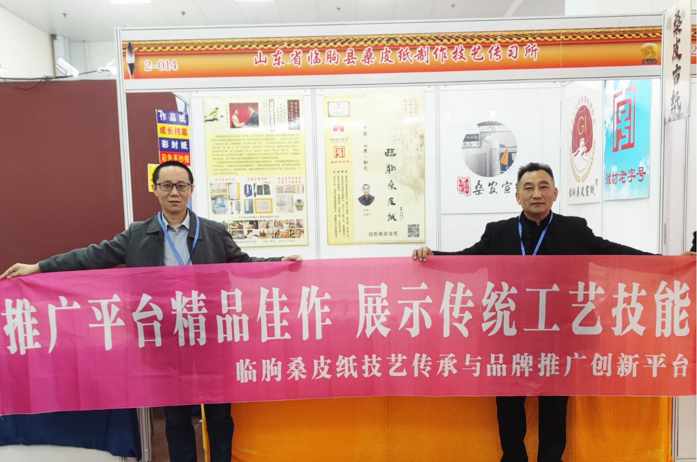 临朐桑皮纸技艺传承与品牌推广创新平台首次设立展位参展,推广平台精品佳作,展示传统工艺技能。传统的书画桑皮纸全媒体营销、全场景呈现,融入现代生活的纯桑皮、红花、椒房、麻丝等桑皮壁纸彰显绿色环保理念,满足个性化需求,实现了对临朐桑皮纸非遗的创造性转化和创新性发展,是非遗活态传承的生动实践。