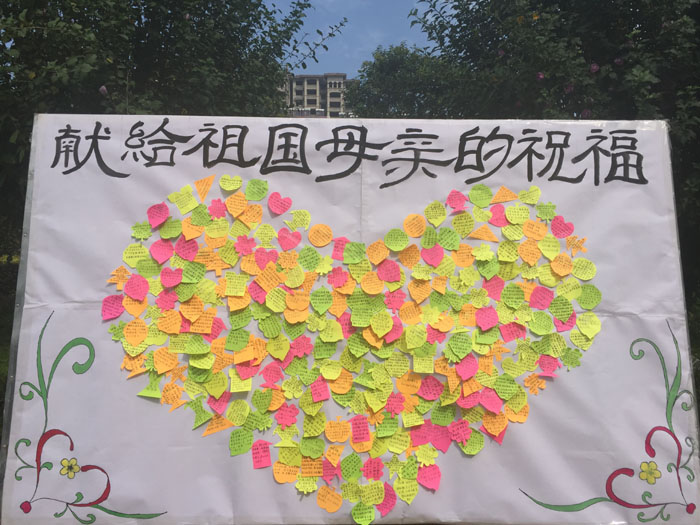 活动中,同学们组织开展了“爱祖国,爱家乡,爱学校”为主题的演讲比赛,选手们时而慷慨激昂、激情澎湃,时而娓娓道来、淡定从容,声情并茂的歌颂了伟大祖国繁荣富强,体验家乡变化,感受人民生活水平提高和学校日新月异的发展,激励广大师生爱国爱家爱校的情感,赢得了现场观众阵阵掌声;同学们还利用便利贴书写节日寄语,提前送去对伟大祖国温馨的祝福,抒发了大学生爱党爱国的情感和坚定跟党走的信心。同学们以班级为单位集体观看了《开国大典》、《百团大战》、《建国伟业》等影片,革命先辈抛头颅、洒热血为国为民奋斗的故事令大家热血沸腾、斗志昂扬。
