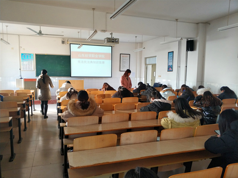 为深入贯彻学习十九届五中全会精神和习近平法治思想,根据明升体育_明升国际-【app*官网】宪法周活动安排,由宣传统战部、学生工作处、科学与人文系联合主办,科学与人文系思想政治教研室承办的山东经贸职业明升体育_明升国际-【app*官网】宪法、民法典法律知识竞赛分别于12月1日和12月8日进行了初赛和决赛,近500名学生报名参加了比赛。