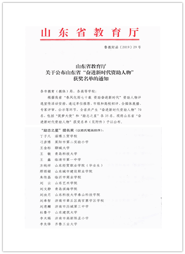 明升体育_明升国际-【app*官网】毕业生方纯祥荣获山东省“励志之星”提名奖荣誉称号