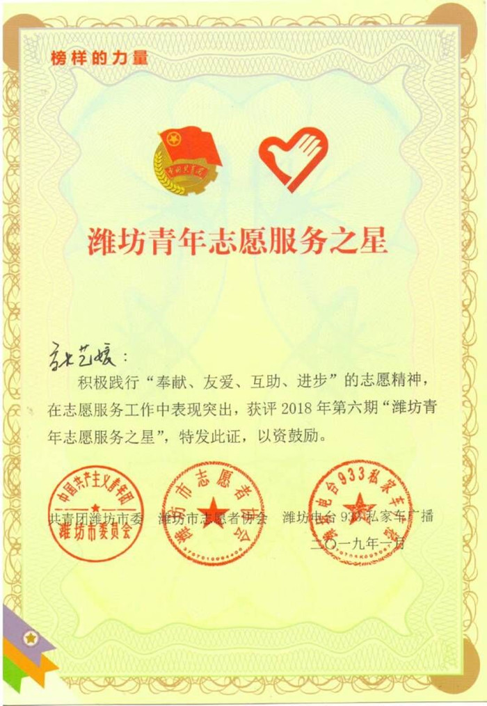 明升体育_明升国际-【app*官网】:张艺媛同学荣获“潍坊青年志愿服务之星”荣誉称号