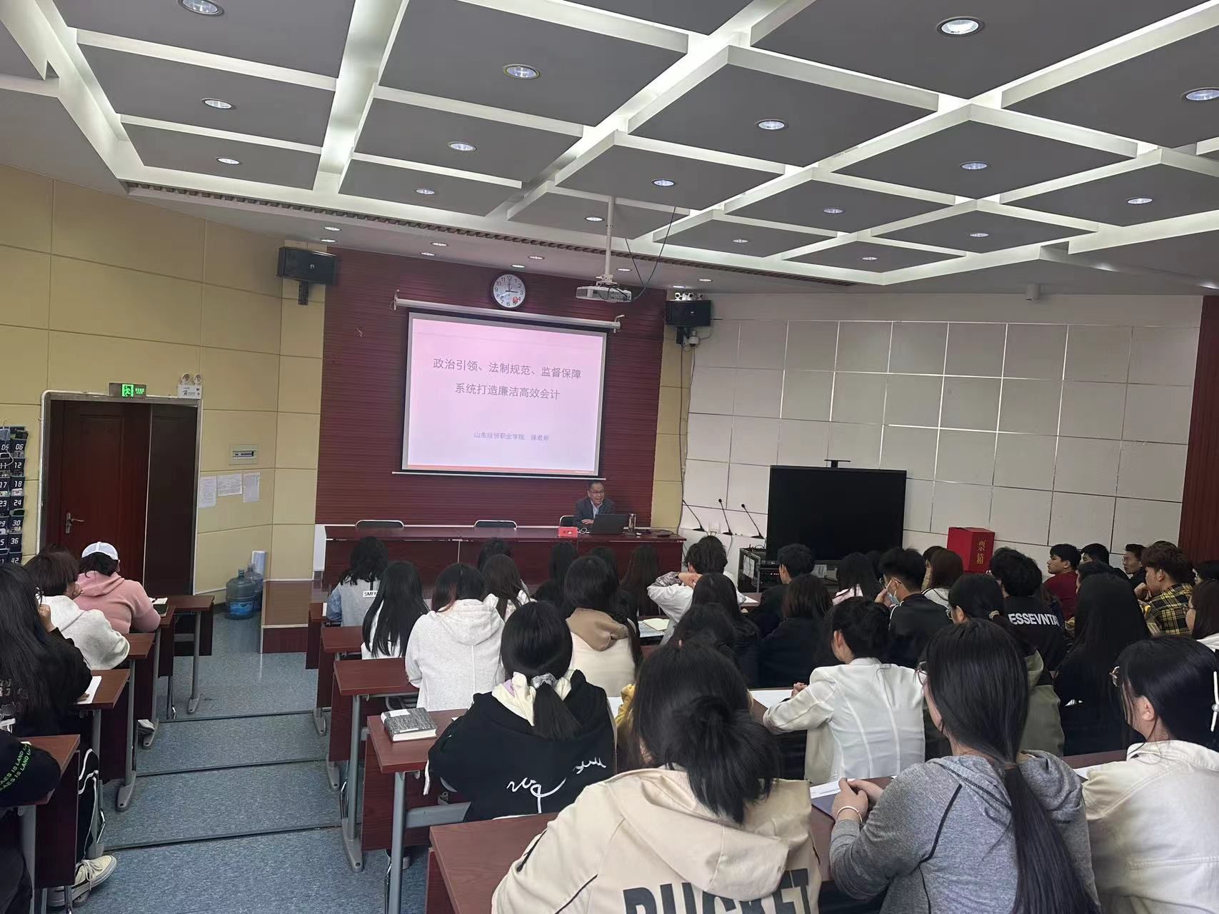开展廉洁教育课堂,会计系主任、党总支副书记侯君邦在1号教学楼会计大讲堂为全体入党积极分子讲了题为《清廉会计》的专题课,专题课从提高政治素养,会计违规案例,建设法治会计,健全内部控制,加强会计监督五个方面展开讲解,引导同学们扣好第一粒“廉洁扣”,树立正确的价值观,培养正直的品质,告诫同学们在工作岗位上要心有所畏,言有所敬,行有所止。这为日后学生们走出校园、进入社会,事业发展打下廉洁自律的思想基础。