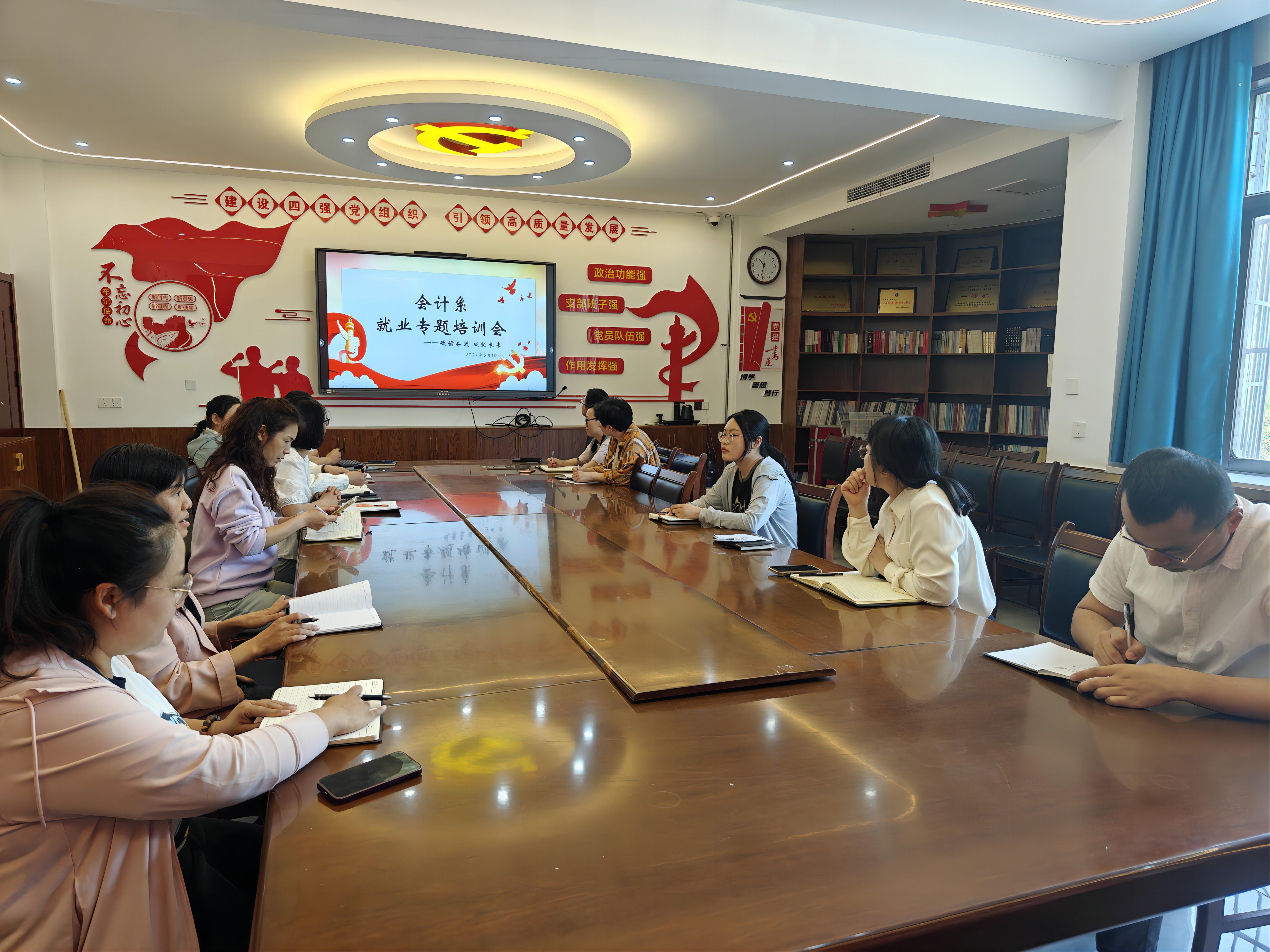 为更好的促进2024届毕业生就业,提高就业质量,结合明升体育_明升国际-【app*官网】要求,围绕大学生就业痛点、难点,按照会计系第一期辅导员“用爱铸魂 师生连心”专题教育活动的安排。5月10日上午,会计系在1号教学楼106会议室举办“砥砺奋进 成为未来”就业专题培训会。本次培训会由会计系辅导员付强主讲,会计系全体辅导员参加。