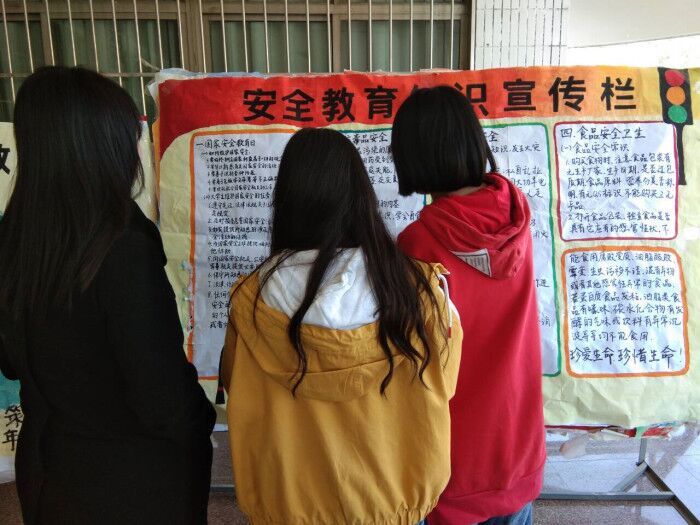 一是组织辅导员学习学校安全条例,召开禁毒排查、宿舍消防整治等专题会议,传达学习会议和条例内容,确保学生安全工作主责落实;二是举行“生命至上、安全发展”为主题的视频观看活动,组织学生在教室观看了“安全生产事故预防”、“法律法规”等教育视频;三是举办“安全知识竞赛”活动,以班级为单位组建团队,充分激发全体学生安全意识;四是在全系开展了禁毒排查工作,通过海报宣传、召开班会、观看禁毒专题教育片等形式,让学生们更深刻地了解毒品对社会、家庭、个人的危害,珍惜生命,拒绝毒品;五是开展宿舍安全大排查,全体辅导员对所属322个宿舍进行了安全大排查,并重点就消防安全隐患、宿舍制度落实、宿舍维修、管制刀具、大功率电器、易燃物品等事项进行了记录和整改。