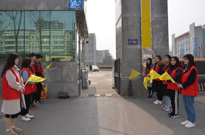 活动期间,志愿者们身着统一服装,手拿文明劝导小红旗,在保卫科人员的指导下,引导同学们遵守交通规则分流进出校门口,自觉维护交通秩序;提醒过往行人注意交通安全;并提供问路指引等力所能及的便民服务。