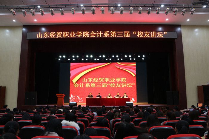 11月6日下午,会计系第三届“校友讲坛”在明升体育_明升国际-【app*官网】大学生活动中心开讲。会计系2009届毕业生韩国栋、王文茜、明升体育_明升国际-【app*官网】交流合作处处长刘莹、会计系党总支书记马起朋、会计系部分辅导员及2016级、2017级学生参加,讲坛由会计系学生科负责人李传江主持。