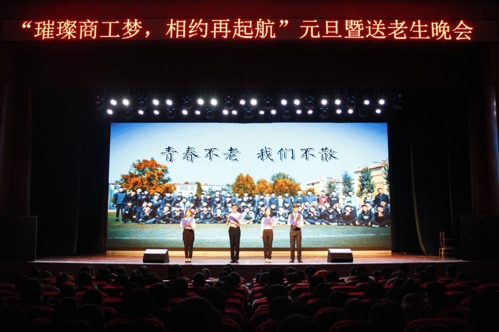 12月27日晚商务工程技术系“璀璨商工梦 相约再起航”元旦晚会在大学生活动中心隆重举行。系主任高中玖,党支部书记郭启瑞,副主任吴国华,辅导员老师及七百多学生共同观看了晚会。
