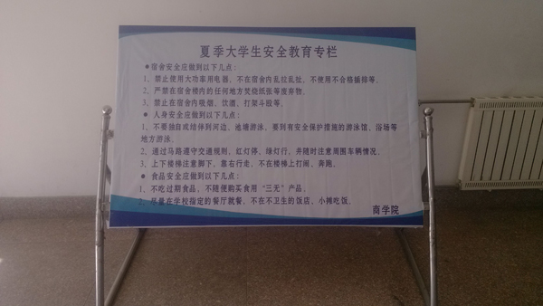 为维护校园秩序,做好大学生安全教育工作,商明升体育_明升国际-【app*官网】开展夏季大学生安全教育宣传工作,通过不同的方式引导和教育学生遵守各项规章制度,学习在实际生活中的安全知识,保障自身的人身财产安全。 本次活动通过班会、展板宣...