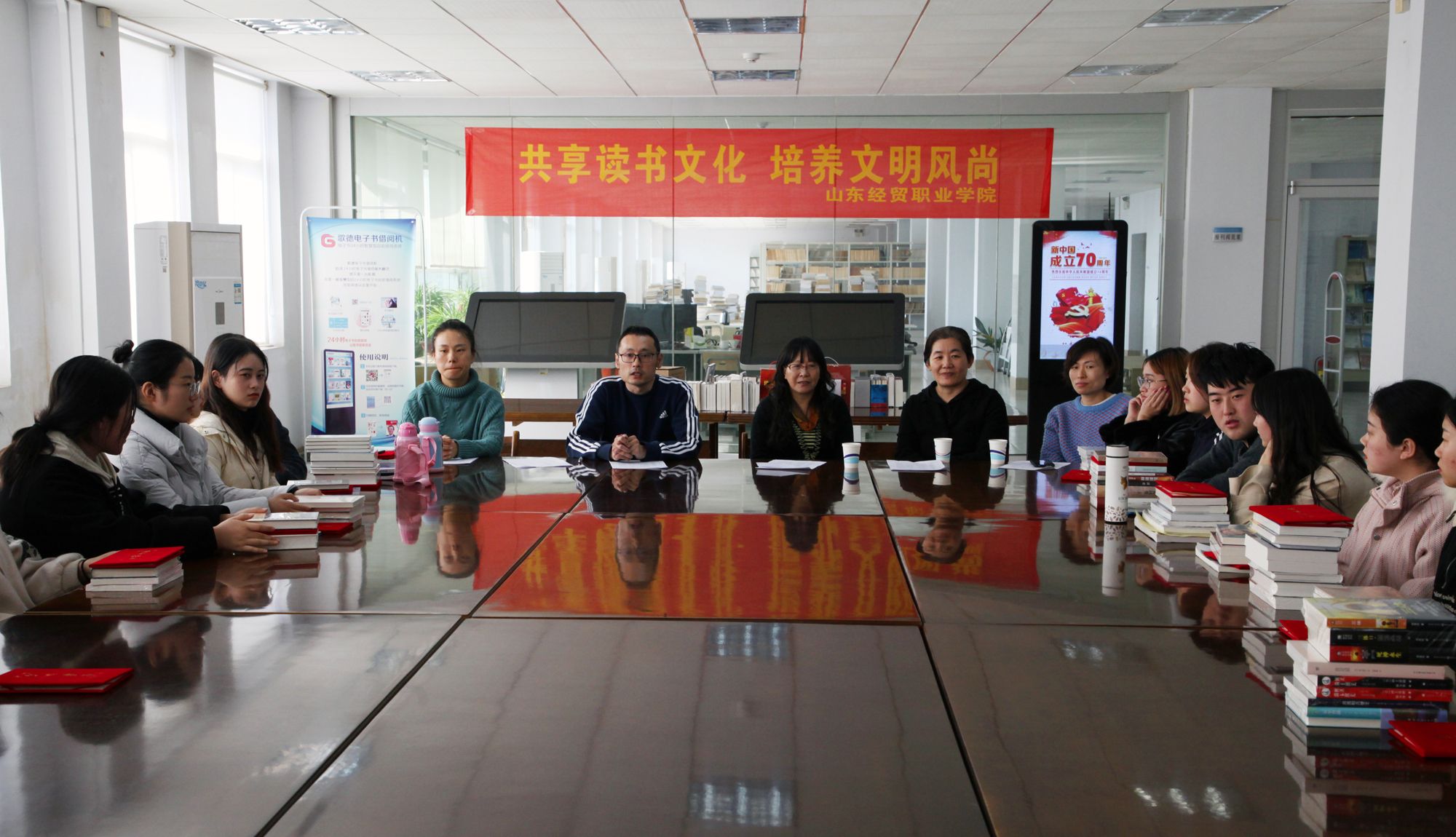 11月14日,山东经贸职业明升体育_明升国际-【app*官网】第二届“最美读者”手机摄影大赛颁奖典礼在图书馆六楼阅览室举行,图书馆副馆长臧伟、科学与人文系艺术教研室李霞,邓明灿、图书馆王凯、王国丽共同为获奖选手颁发了证书及奖品。